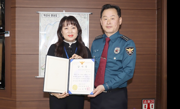 익산경찰서장(서장 고영완)은 5일 CCTV 통합관제센터를 방문해 술에 취해 1시간 이상 갓길에 앉아있는 시민을 발견하여 귀가조치한 CCTV 관제요원에게 감사장을 수여하고, 격려하는 시간을 가졌다.