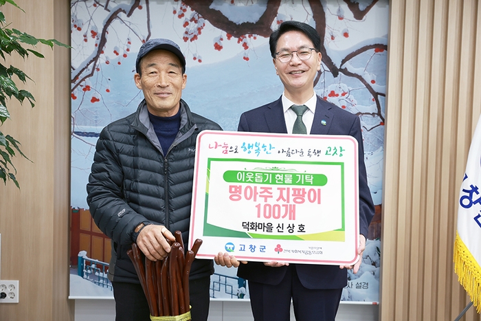 고창군 신림면 신상호(62)씨가 지난 6일 고창군청을 방문해 직접 만든 명아주 지팡이 100개를 기탁했다.
