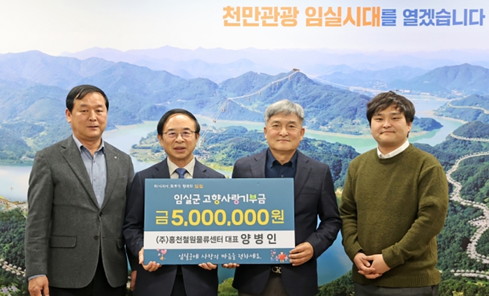 임실군이 지난 12일 ㈜홍천철원물류센터 양병인 대표가 임실을 직접 방문하여 고향사랑기부금 최고 금액인 5백만원을 기탁했다고 밝혔다.