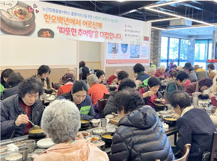 부안군은 지난 18일 노인맞춤돌봄서비스 홀몸어르신을 위한 사랑의 보양식 나눔 행사를 한오백년 추어탕에서 진행했다.
