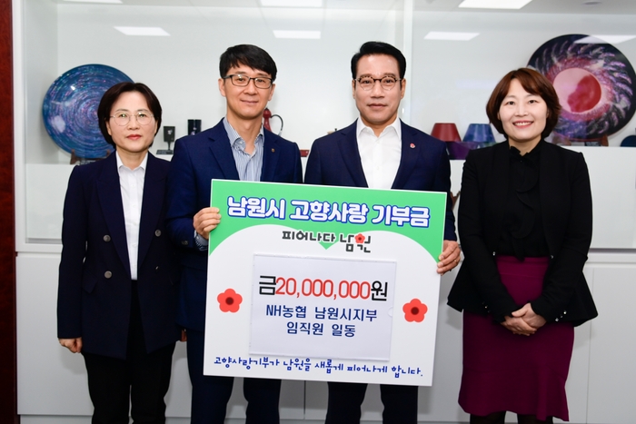오영석 지부장은 “남원시지부는 앞으로도 방문 고객 대상 및 기타 행사 시 고향사랑기부제의 활성화를 위한 적극적인 홍보를 실시할 계획이며, 남원시와 발맞추어 남원 발전을 위해 노력하겠다”고 전했다.