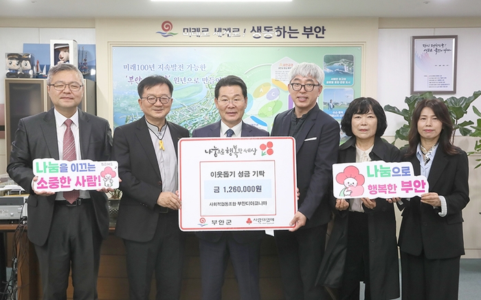 사회적협동조합 부안디아코니아(이사장 이춘섭)는 28일 부안군청을 방문해 지역의 어려운 이웃을 위해 써달라며 이웃돕기 성금 126만원을 기탁했다.