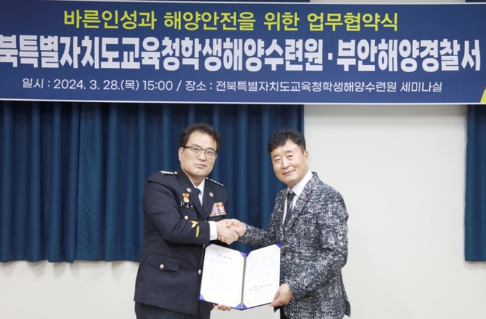 부안해양경찰서(서장 서영교)는 28일 전북특별자치도학생해양수련원과 상호 협력과 전북지역 미래인재 양성 및 해양 안전을 위하여 업무 협약을 체결하였다고 밝혔다.