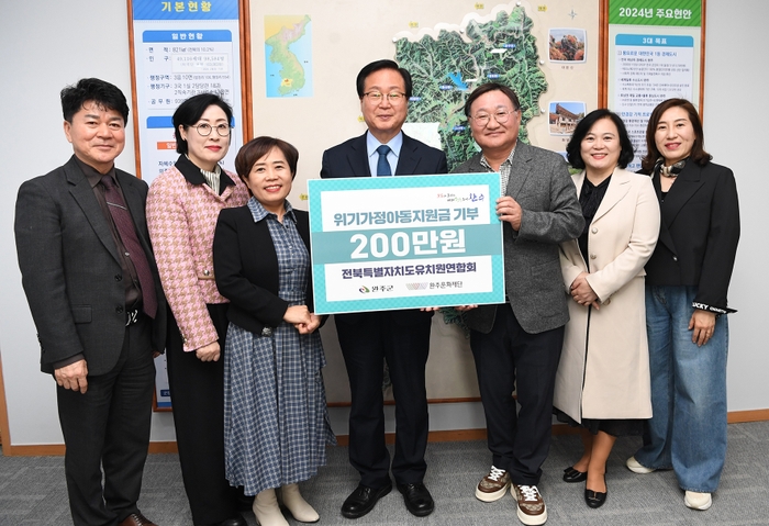 유희태 완주군수는 “경제적, 사회적으로 도움이 필요한 아동들에게 따뜻한 마음이 전해질 수 있도록 후원해 준 전북특별자치도유치원연합회에 감사드린다”며 “군에서도 아동 복지 증진을 위해 적극 노력하겠다”고 밝혔다.