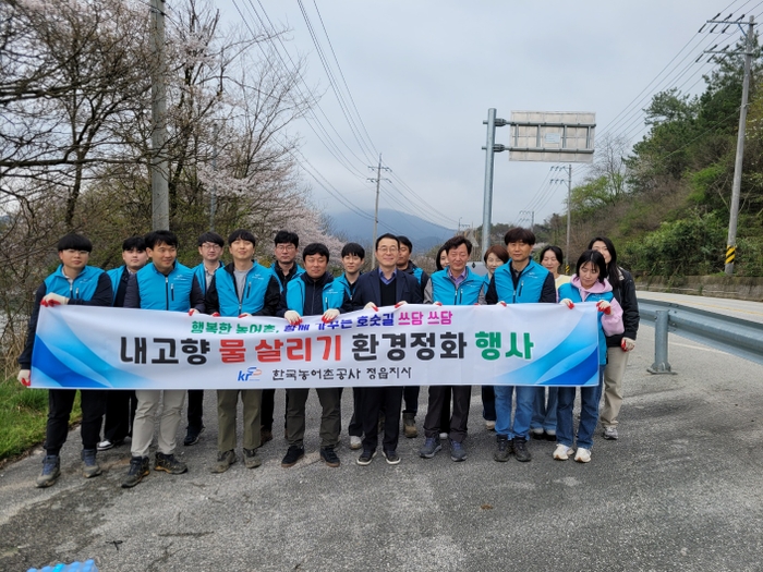 한국농어촌공사 정읍지사(지사장 이건국)는 지난 4일 고부면 장문리 소재 석우저수지에서 수질개선 등을 위한 ‘호숫길 쓰담쓰담’ 내고향 물 살리기 환경정화(캠페인) 활동을 실시했다.