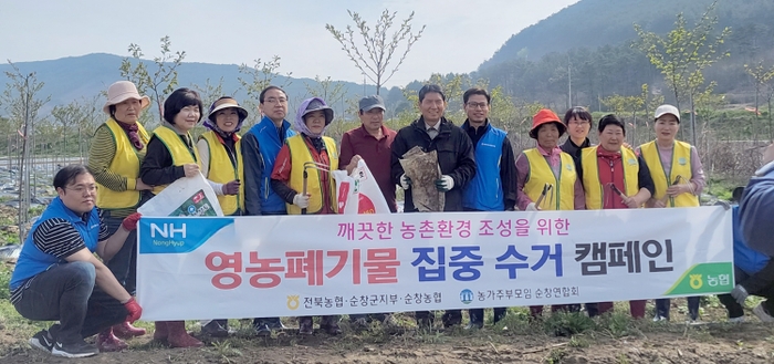 농협중앙회 순창군지부(지부장 이병희)는 순창농협, 순창군 농가주부모임과 함께 8일 순창군 유등면 일대에서 농촌일손돕기 및 영농폐기물 수거활동을 전개했다고 밝혔다.
