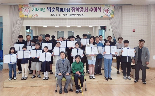정읍시 칠보면은 지난 17일 오후 5시 행복이음센터 대강당에서 학생과 학부모 50여명이 참석한 가운데 박순덕 여사 장학 증서 수여식을 개최했다.