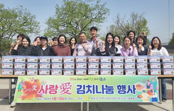완주군 지역사회보장협의체 어르신행복분과가 관내 취약 가구 및 홀몸 어르신 100세대를 위한 ‘사랑愛 물김치’ 나눔행사를 진행하였다.