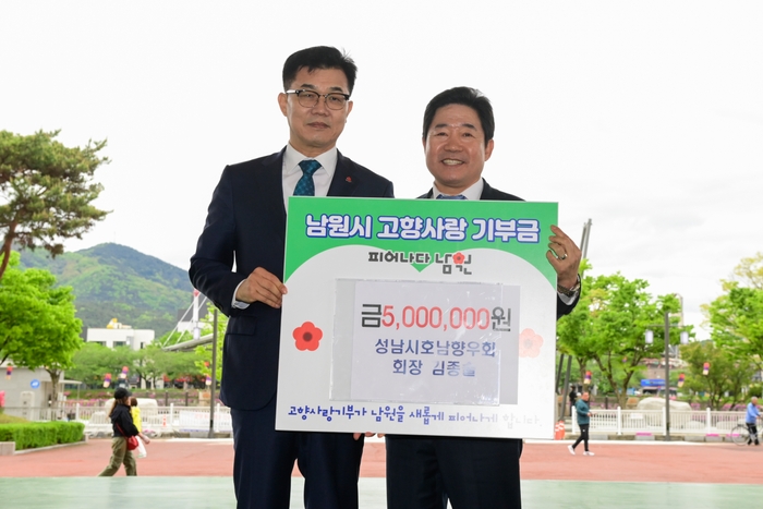 특히 남원시 산동면 출신인 김종술 향우회장은 고향사랑기부금으로 500만원을 전달하면서 “언제나 정겹고 따뜻한 고향 남원에서 향우회 행사를 하게 되어 기쁘게 생각하며 기부금이 남원 발전을 위한 밀알이 되기를 바란다.”고 말했다. 또한, 성남시 호남향우회에서도 춘향장학재단에 장학금 500만원을 전달했으며, 이는 남원시 미래인재 양성을 위해 소중히 쓰일 예정이다.