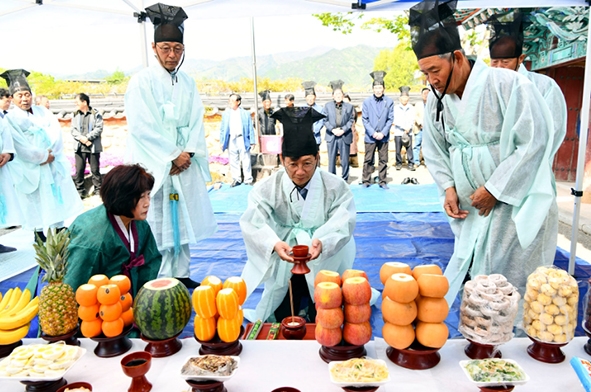 이날 제례에서는 최훈식 군수가 초헌관을, 장정복 의장이 아헌관을, 추영곤 교육장이 종헌관을 맡아 제례식을 거행했다.