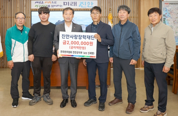 전국한우협회 진안군지부(지부장 신재명)는 23일 진안군수실을 방문해 진안사랑장학재단(이사장 전춘성)에 장학금 2백만원을 기탁했다.