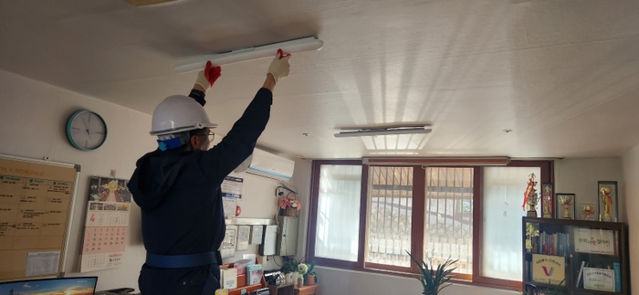 사회봉사단, 25일 군산시 신창동 소재 아동 복지시설 삼성애육원에 상품을 전달 및 시설 전기 안전 검사 실시