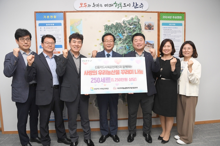 유희태 완주군수는 “이번 기부는 농업인과 지역사회가 상생하는 의미 있는 나눔”이라며 “지역사회 나눔을 실천해주신 신용카드사회공헌재단과 우리농업지키기운동본부에 감사 드린다”고 말했다.