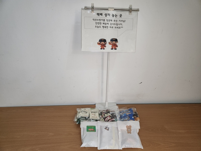 익산소방서(서장 김상곤)는 지난 26일 초등학생 2명이 팔봉119안전센터 택배보관함에 손수 쓴 편지와 간식 꾸러미를 두고 간 사실이 알려져 훈훈한 감동을 주고 있다고 밝혔다.