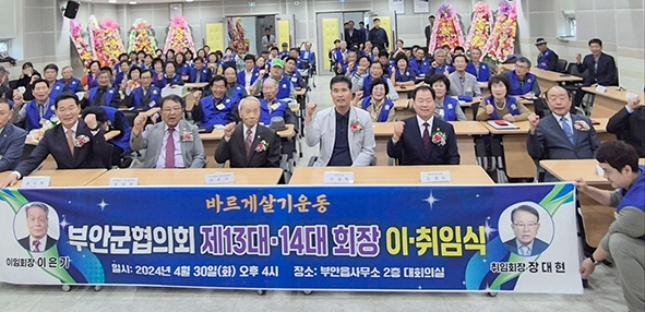 바르게살기운동 부안군협의회(회장 장대현)는 지난달 30일 부안읍 행정복지센터에서 제13·14대 회장 이·취임식을 개최하였다.