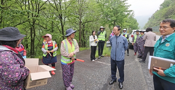 이날 제초 작업은 섬진강댐 도로변 아름다운 장미꽃길 조성을 위해 강진면 회진리에서 용수리까지 약 6km 구간을 이른 새벽부터 20여 명의 생활개선회원이 동참했다.