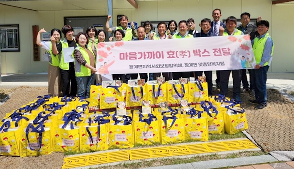 장수군 장계면 지역사회보장협의체(공동위원장 김성현·임재성)는 가정의 달을 맞아 지난 2일 관내 고령 어르신 50명에게 ‘효(孝)박스’를 전달했다.