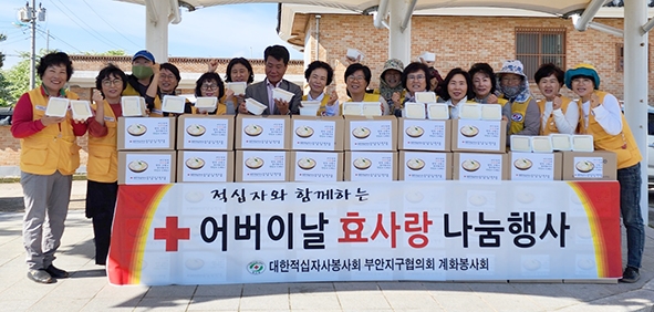 전막내 회장은 “ 어버이날을 맞이하여 존경과 사랑하는 마음을 담아 직접 만든 두부를 전달해 드려 마음이 뿌듯하고, 계화면 적십자봉사회는 지역사회에 나눔문화가 확산되고 더욱 더 따뜻한 사회가 되도록 최선을 다하겠다.”고 말했다.