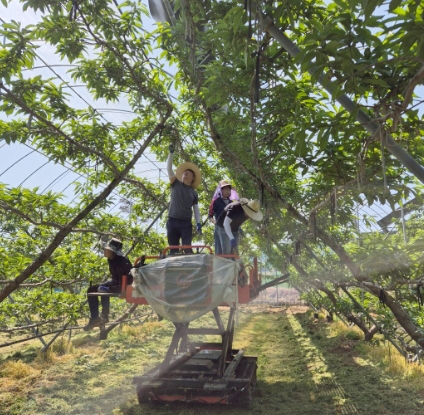 이날 일손돕기는 3010㎡ 면적의 복숭아 과수원에서 복숭아 적과작업을 실시하며 농가 일손을 도왔다.