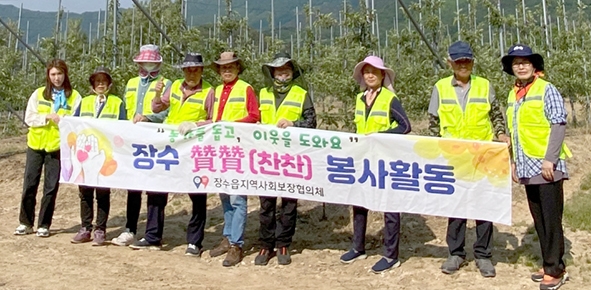 장수군 장수읍 지역사회보장협의체(공동위원장 조용호, 김인기)은 지난 22일 영농철을 맞아 농촌 일손 돕기에 나섰다.