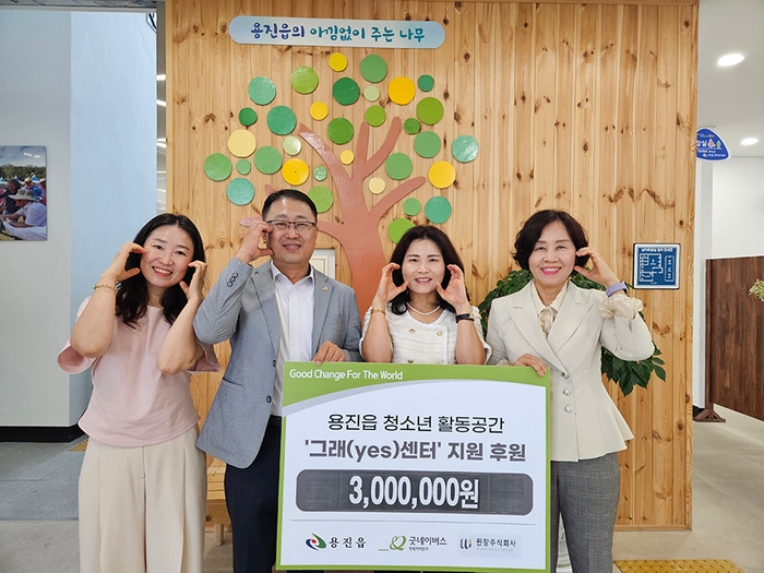 30일 용진읍은 신재생에너지 업체인 ㈜원창이 그래(yes)센터 조성을 위해 300만 원의 후원금을 용진읍과 굿네이버스 전북지역본부에 전달했다고 밝혔다.
