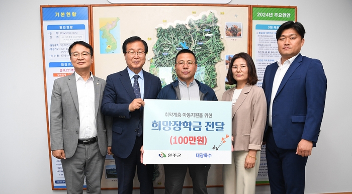이날 장학금 기부는 평소 더불어 살아가는 지역사회를 만들기 위해 취약계층과 자립준비청년들에 관심이 많은 김재천 의원의 후원기업 연계를 통해 이루어졌으며, 태광특수 등 완주소재 기업이 완주군에 기부금 500만 원을 기탁했다.