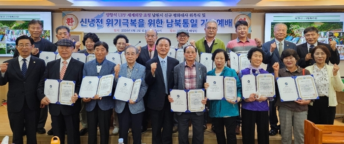 신한국가정연합 남원가정교회(당회장 김용갑)는 2일오전 ‘양창식 UPF세계의장 초청 신규평화대사 위촉식 및 신냉전 위기극복을 위한 남북통일기원예배’를 이석보 남원시지부장, 유학수 협의회장, 김병석 회장, 김주완 문화원장, 박병만 회장, 이은진 회장, 김호민 보훈회관 노인회장, 김광수 회장등 1백50여명이 참석한 가운데 성황리에 개최했다.