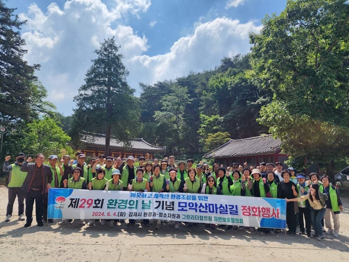 김제시(시장 정성주)는 제29회 환경의 날을 맞아 4일 청소자원과 직원과 자연보호협의회, 그린리더 회원들과 함께 금산사 모악산마실길 정화활동에 나섰다고 밝혔다.