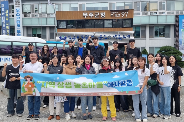 무주군에 따르면 지난 17일부터 호남대학교 뷰티미용학과와 물리치료학과 치위생과, 항공서비스학과 학생과 교직원 등 40여 명이 무주를 찾아 19일까지 설천면 외양마을에서 봉사활동을 펼쳤다.