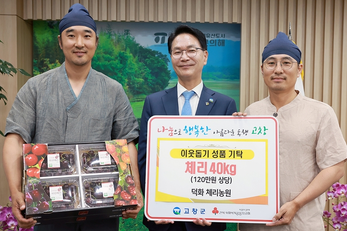 고창군 덕화 체리농원(대표 이재헌)이 20일 하우스에서 직접 재배한 체리 80박스(40㎏)를 고창군에 기부했다.