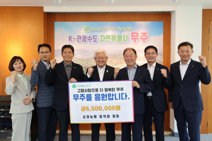 순창농협 임직원 65명이 지난 26일 무주군에 고향사랑기부금 650만 원을 기탁했다.