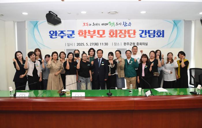 완주군은 27일 군청 전략회의실에서 완주군 학부모회장단과 간담회를 갖고, 지역 교육정책의 미래 방향과 청소년 미래인재 양성을 위한 프로젝트 추진 방안에 대해 심도 있는 논의를 진행했다.