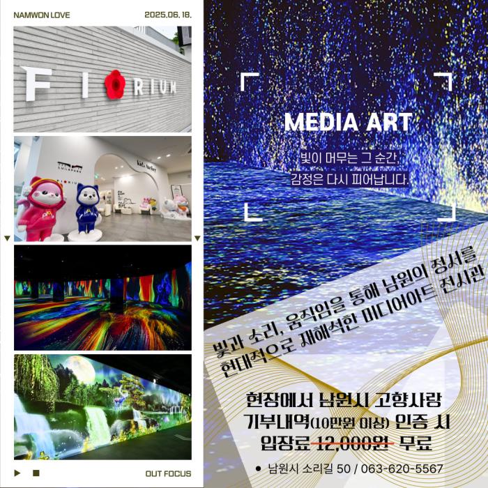 남원시(시장 최경식)가 2025년 남원시 고향사랑기부자에게 신규 개관한 미디어아트 전시관 「피오리움」 무료입장 이벤트를 실시한다.