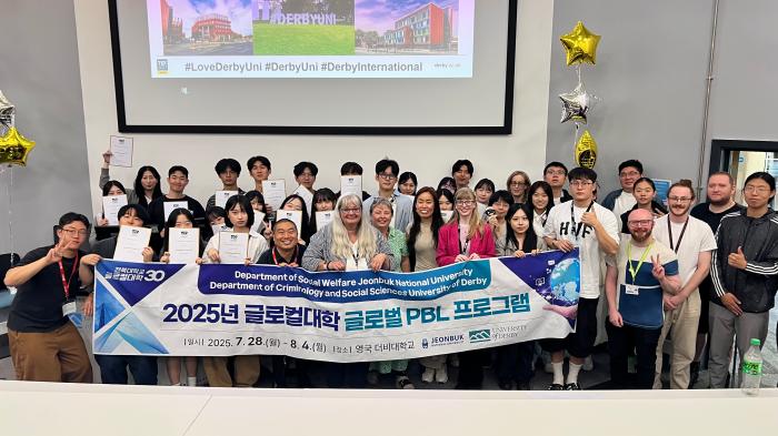 전북대학교 사회복지학과 학생들이 영국의 저명한 실천연계 중심대학인 더비대학교(University of Derby)와 함께 지역사회복지 문제 해결 프로젝트를 성공적으로 마쳤다. 이번 연수는 글로컬대학30 사업의 지원으로 지난달 27일부터 8월 4일까지 9일간 진행됐다.