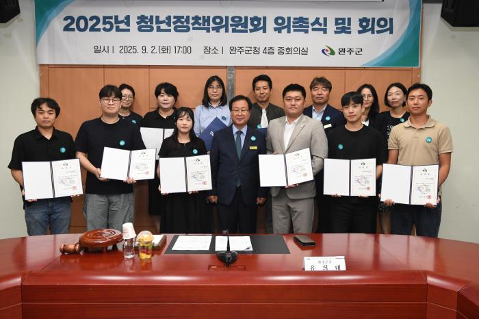 지난 2일 완주군은 청년정책 전반을 심의하고 자문하는 청년정책위원회를 새롭게 구성하고 위촉식과 첫 회의를 열었다.