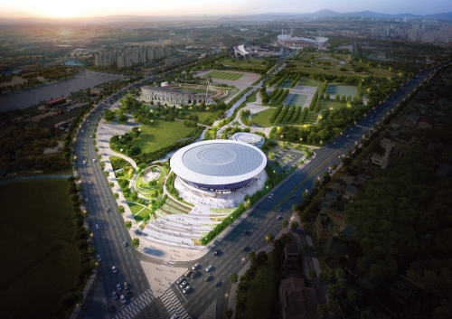 총사업비 809억 원이 투입되는 실내체육관은 농구, 배구, 배드민턴 등 다양한 실내경기는 물론, 각종 실내행사도 개최할 수 있는 다목적 체육관으로 설계됐다. 주경기장과 보조경기장, 2개 동이 들어서며 오는 2027년 준공을 목표로 공사에 속도를 내고 있다.