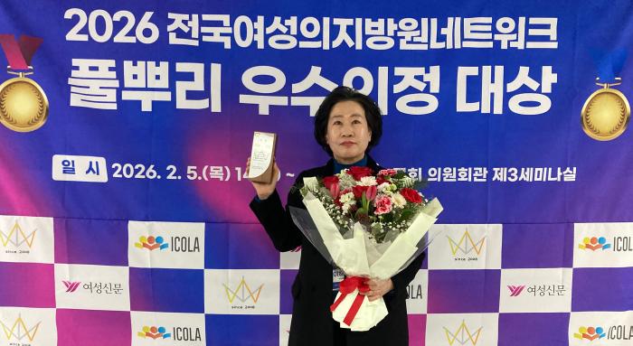 이해양 의원은 지난 5일 서울 국회의사당에서 열린 2026 전국여성지방의원네트워크 풀뿌리 우수의정 시상식 생활 정치 분야의 특별한 성과를 이룬 공로로 최우수상을 수상했다.