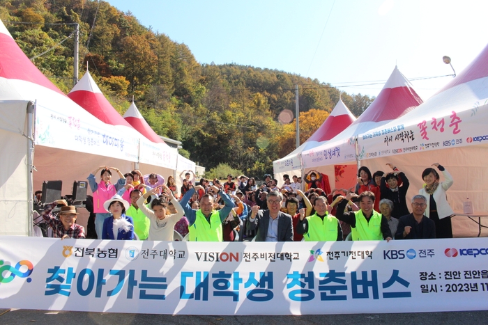 전북농협(본부장 김영일)은 전주대학교(총장 박진배), 전주비전대학교(총장 우병훈), 전주기전대학(총장 조희천), KBS전주방송총국(총국장 김성모), 한국전력공사 전북본부(본부장 김영환) 함께 2일 진안군 진안읍 원단양마을을 찾아 '찾아가는 대학생 청춘버스'를 운영했다.