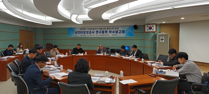 전북도는 23일 ‘미래모빌리티 부품산업 클러스터 조성’을 위한 사전타당성조사 연구용역 착수보고회를 도청에서 개최했다.