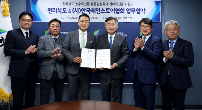 전북도와 (사)한국체인스토어협회(회장 강성현 롯데마트 대표)는 27일 도 서울본부에서 전북도 농·수·축·특산물 유통 활성화와 판매촉진을 위한 업무협약을 체결했다.