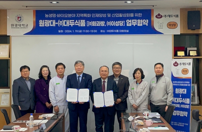 전북특별자치도에서 추진하는 지자체-대학 협력기반 지역혁신사업(이하 RIS 사업)의 농생명·바이오사업단이 19일 푸드테크 및 바이오소재 분야의 연간 배출인원 중 10명을 ㈜대두식품에 취업시키는 확정형 채용 약정을 맺었다. 이번 업무협약을 통해 양측은 지자체의 정책 방향과 연계해 실질적으로 산업 현장에 필요한 인력을 양성하고, 도내 인재들이 지역에 정주할 수 있는 발판을 마련함으로써 K-푸드메카로 자리매김, 지역경제 발전을 기대하고 있다. 앞서 RIS 사업의 농생명바이오사업단은 지난해 11월 3일 발대식 이후 12월 20일 산업체, 지자체 등 100여명이 참석한 기업 설명회를 추진다. 올해부터 본격적인 농생명·바이오분야의 인력양성을 위해 도내 대학과 협업을 통해 실무에 투입이 가능한 현장 맞춤형 인재 양성을 진행할 계획이다. ㈜대두식품의 조성용 대표이사는 이날 협약 체결을 통해 산업현장에 필요한 인력 확보와 우리 지역의 인재들이 자신의 꿈을 펼칠 기회를 제공하기 위해 대두식품의 기술연구소와 농생명·바이오사업단이 협력해 기초연구를 진행할 예정이라고 밝혔다. RIS 농생명바이오사업단 단장인 최준호 원광대 교수는 “농생명바이오분야에서 배출하는 지역산업 맞춤형 인력에 대한 정주 취업을 연계하는 프로그램이 RIS 사업의 핵심이다”며 “우리 사업에서 배출되는 학생들에 대한 취업 확정은 지방 대학의 경쟁력 및 취업률 향상에 큰 도움이 될 것이다”고 말했다. 백승하 도 농생명식품과장은 “전북특별자치도가 농생명산업의 수도로 거듭나도록 도내 대학이 지역 푸드테크 산업 수요에 발 빠르게 대응할 수 있는 지원을 아끼지 않겠다”고 말했다. /유연순 기자