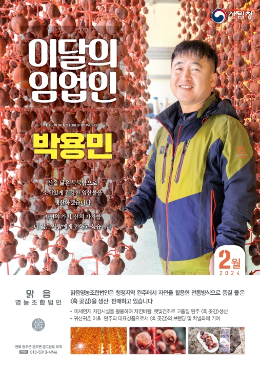전북특별자치도는 산림청이 주관하는 ‘이달의 임업인’으로 완주에서 곶감을 생산하는 박용민 맑음영농조합법인 대표(51)를 선정했다고 7일 밝혔다.