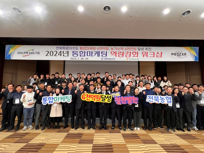 전북특별자치도(도지사 김관영)와 전북농협(본부장 김영일)은 전북특별자치도 통합마케팅 6천억원, 농가소득 6천만원 달성을 위해 28일부터 29일까지 농협생명 변산수련원에서 '행정-조합공동사업법인-참여농협 합동 통합마케팅 역량강화 워크샵'을 개최했다.