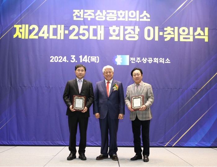 이날 열린 전주상공회의소 회장 이‧취임식에는 김관영 지사와 국주영은 도의장, 서거석 교육감, 우범기 전주시장, 유희태 완주군수, 정운천, 안호영, 강성희 국회의원 등 기관‧단체장과 지역 상공인 등 모두 300여명이 참석했다.