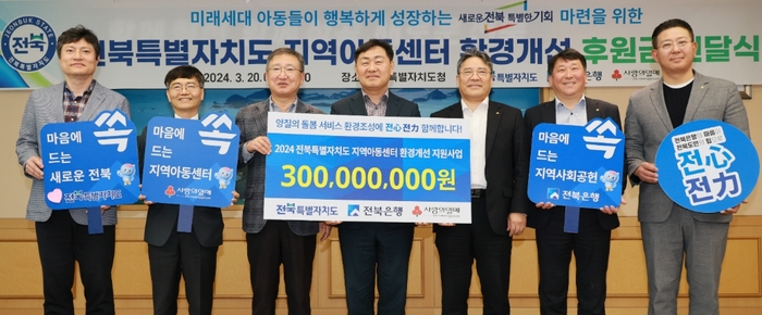 전북은행, 지역아동센터 후원금 3억 전북자치도에 기탁