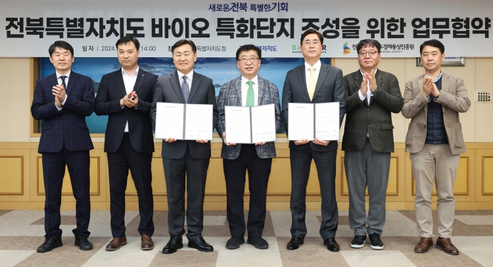 전북자치도가 유전자 기반 바이오 벤처 1호 기업인 바이오니아와 업무협약을 체결하고 바이오 특화단지 유치 및 바이오산업 육성을 위한 협력을 강화하고 있다. 전북자치도는 지난 5일 전북자치도청 회의실에서 ㈜바이오니아, 전북자치도경제통상진흥원과 전북 바이오 특화단지 조성 협력을 위한 업무협약을 체결했다. 이번 업무협약에는 김관영 전북자치도지사와 바이오니아 박한오 회장, 전북자치도경제통상진흥원 윤여봉 원장 등이 참석했다. 바이오니아는 지난 1992년 설립된 ‘바이오 벤처 1호’ 기업으로 30여 년간 600개 이상 원천 특허기술을 개발했으며 생명과학‧분자진단‧신약개발 등 포트폴리오를 다각화해 글로벌 바이오 헬스케어 기업으로 도약하고 있다. 협약의 주요 내용은 ▲바이오 산업 육성을 위한 공동사업 발굴 및 연계협력 추진 ▲바이오 분야 연구개발 조성을 위한 공동 협력 ▲국내·외 주요 바이오기업 기술 동향 공유 ▲바이오산업 육성을 위한 인재 양성 협력 및 전문가 교류 등을 담고 있다. 전북자치도는 이번 협약을 통해 도가 가진 바이오 기반과 기업의 기술력을 융합하는 등 바이오산업 집약화는 물론, 바이오 산업 전반에 성장을 견인할 것으로 내다보고 있다. 김 지사는 “전 세계적으로 코로나19를 겪으면서 질병 예방과 진단, 치료는 물론 생명공학 분야의 중요성을 다시 한번 일깨우는 계기가 됐다”며 “유전자 기반의 첨단 혁신기술을 보유한 바이오니아와의 협약을 계기로 앞으로 전북자치도가 유전자 관련 바이오 분야에서 확고한 경쟁력을 갖게 되었다”고 말했다. 이어 “도내에는 한국생명공학연구원 전북분원 등 관련분야 혁신연구기관들이 집적돼 있다”며 “관련 기업은 글로벌 기업으로 성장할 기반을 마련하며 함께 혁신하고 함께 성공할 시너지를 발휘하게 될 것이다”고 강조했다. /최준호 기자