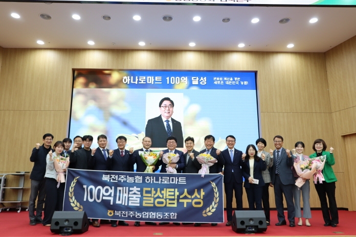 북전주농협(조합장 이우광)이 5일, 농협중앙회 전북본부에서 열린 정례조회에서 ‘하나로마트 100억 매출 탈성탑 수상’의 영예를 안았다.