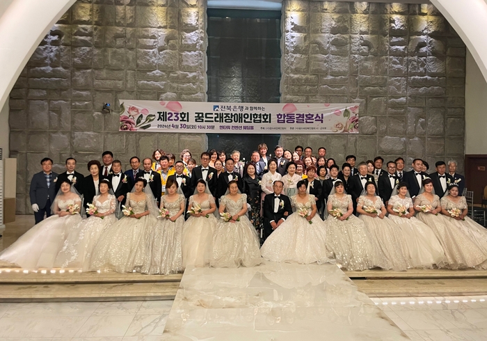 JB금융그룹 전북은행(은행장 백종일)은 꿈드래장애인협회와 함께 지난달 30일 전주 엔타워컨벤션웨딩홀에서 전북은행과 함께하는 ‘제23회 꿈드래장애인협회 합동결혼식’을 성황리에 마쳤다고 밝혔다.