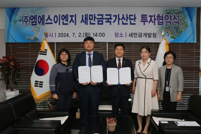 새만금개발청(청장 김경안)은 2일 ㈜엠에스이엔지와 ‘건설기계 외장품, 플랜트, 모듈러(조립식) 제조를 위한 투자협약(MOU)’을 체결했다고 밝혔다.