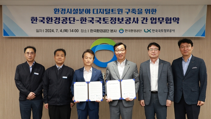 이를 위해 LX와 한국환경공단은 7월 4일 인천시 한국환경공단 본사에서 ‘환경시설분야 디지털트윈 구축을 위한 업무협약’을 체결했다.